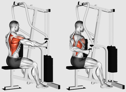 Machine à rangée assise. Un exercice clé pour reconstruire l’épaisseur du dos. Effectuez 4 à 6 séries de 8 à 12 répétitions.