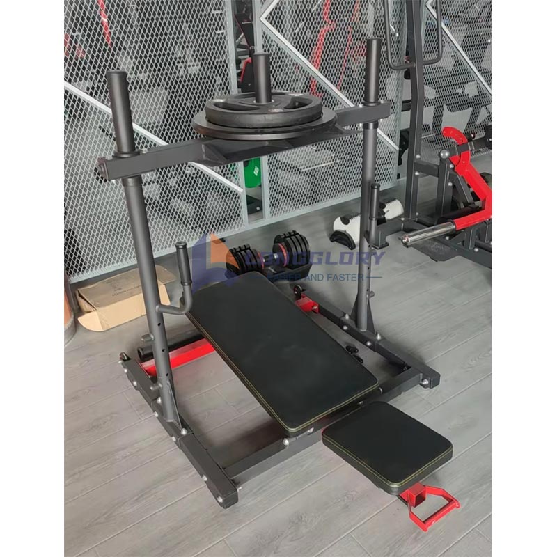 5. Entraînement final: Après avoir terminé l'entraînement, relâchez la plaque pondérée de la machine à appuyer sur les jambes verticales, tirez le levier de verrouillage à ressort vers le bas, puis remettez la plaque auxiliaire vers sa position d'origine.